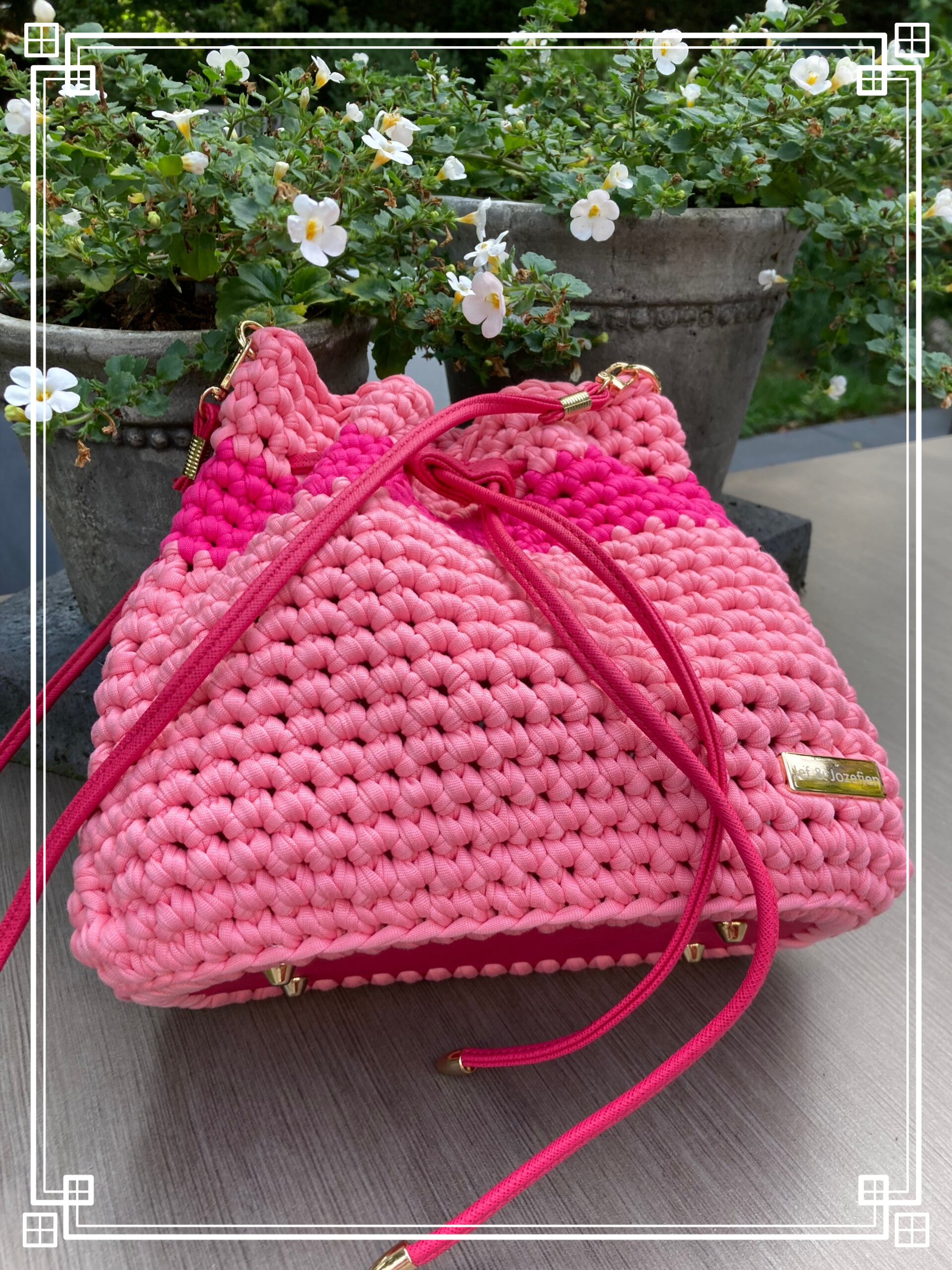 Een schoudertas in speelse frambozentinten.Dankzij het trekkoord en de verstelbare schouderriem draag je haar zoals jij dat wil – stijlvol én comfortabel.