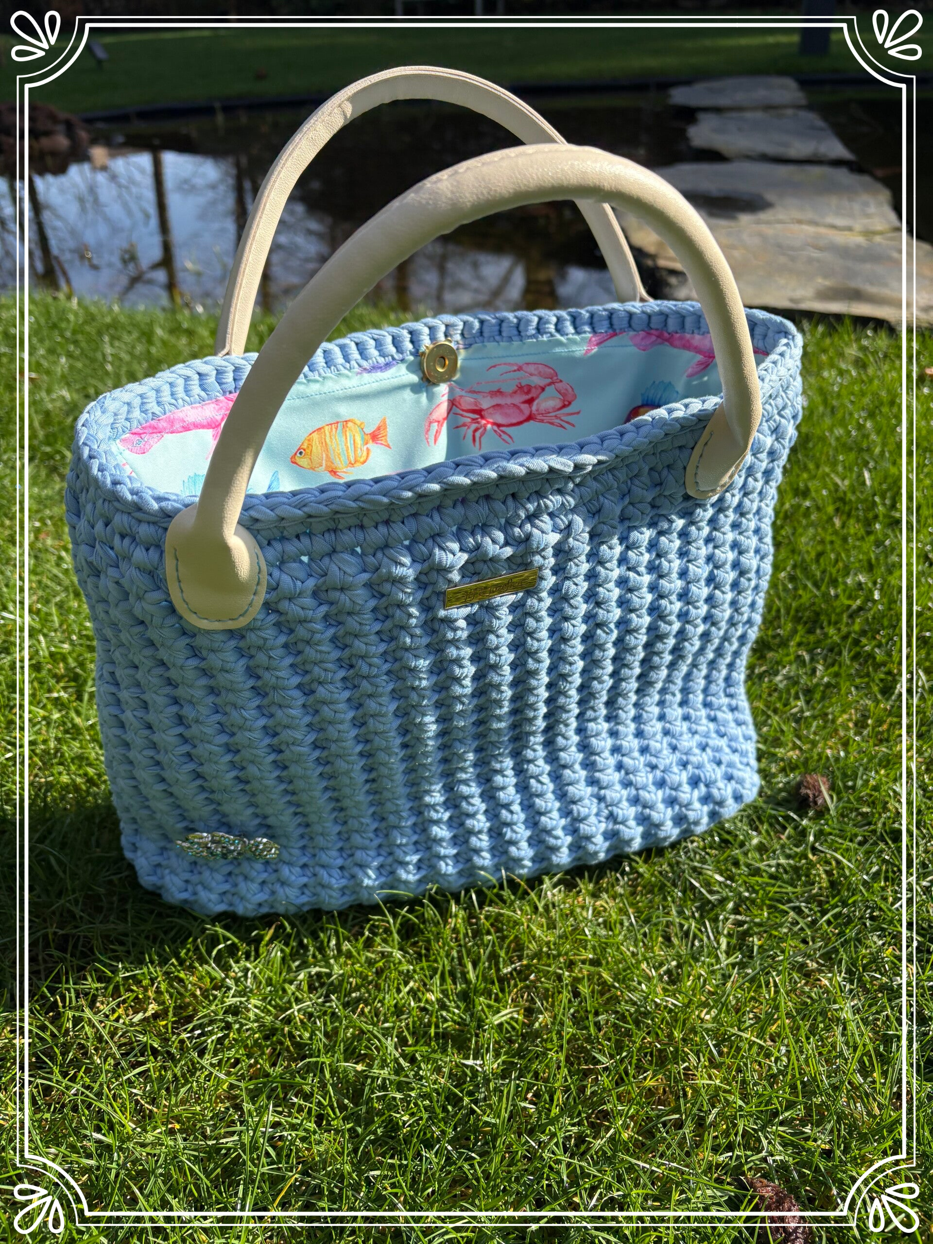 Verfijnde tas die zomerse elegantie uitstraalt met een speelse toets door de voering met zeedieren.